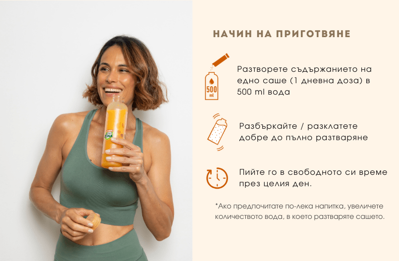 EnerZona BEAUTY е формулирана така, че да отговаря и на ежедневните нужди от хидратация, с екзотичен, свеж вкус на манго и портокал, без добавена захар.