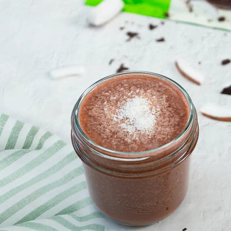 Фруктоза (31,4%) - Грахов протеин (21%) - Алкализирано какао на прах(21%) (какао на прах , коректор на киселинността: калиев карбонат, ванилин) - Протеин от ориз (8%) - Смес на соли (малтодекстрин, калиев цитрат, триосновен калциев фосфат, магнезиев карбонат, железен пирофосфат, цинков глюконат, манганов глюконат, меден глюконат, калиев йодид, натриев селенит) - Соево масло на прах(соево масло, сироп на глюкоза, млечни протеини (0,13% върху готовия продукт), ароматизатори) - Бадемово брашно (3,4%) - сгъстител: гуарова гума - Аромати - Смес на витамини (малтодекстрин, витамин С (L-аскорбинова киселина)) , витамин Е (D-алфа-токоферилацетат), витамин А (бета-каротин), ниацин (никотинамид), пантотенова киселина (калциев D-пантотенат), витамин В6 (пиридоксин хидрохлорид, емулгатор: моно и диглицериди на мастни киселини ), витамин В12 (малтодекстрин, цианокобаламин), витамин D (холекалциферол), тиамин (тиамин хидрохлорид ), рибофлавин, фолиева киселина (птероил-моноглутаминова киселина), биотин (D-биотин), витамин К (менахинон)) - Кокосови влакна (0,6%) - Шоколад на прах (0,5%) (какаова маса), какао на прах , какаово масло, захар) - Изсушени кокосови парченца (0,1%).