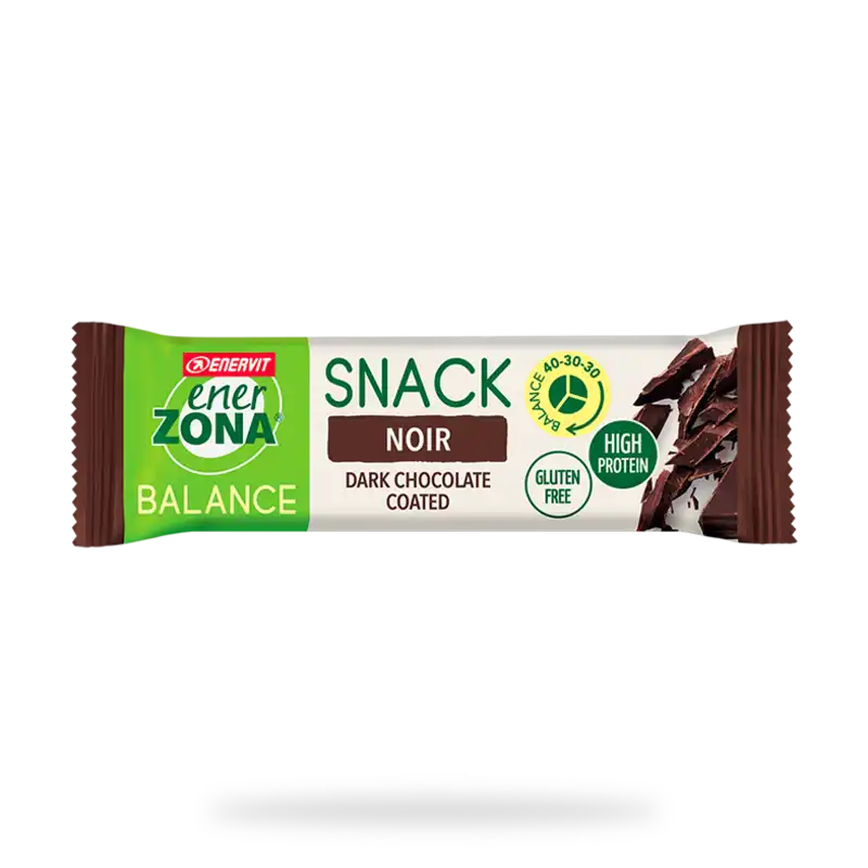 EnerZona Snack Noir е направен изцяло от тъмен шоколад и е покрит със слой от наситен тъмен шоколад.